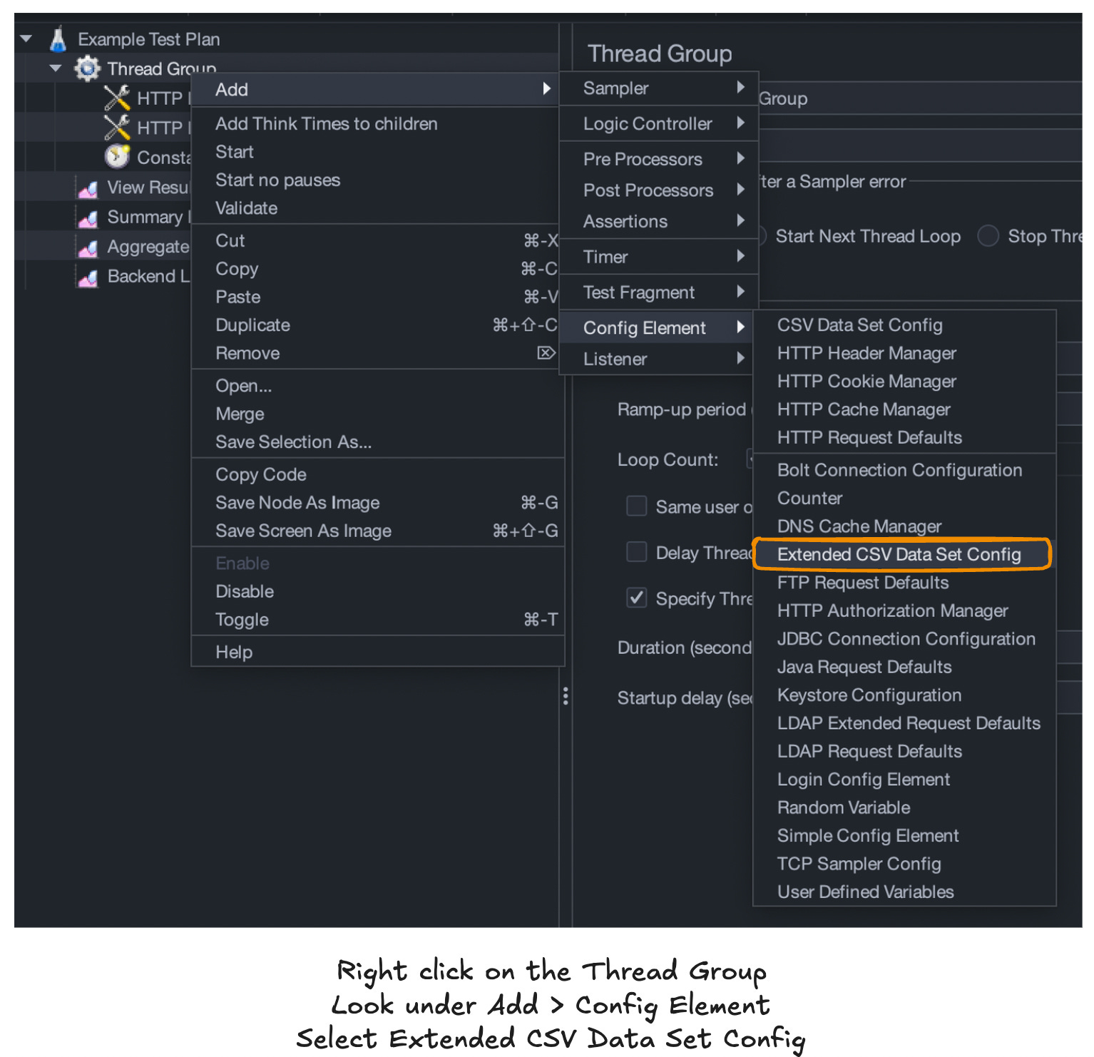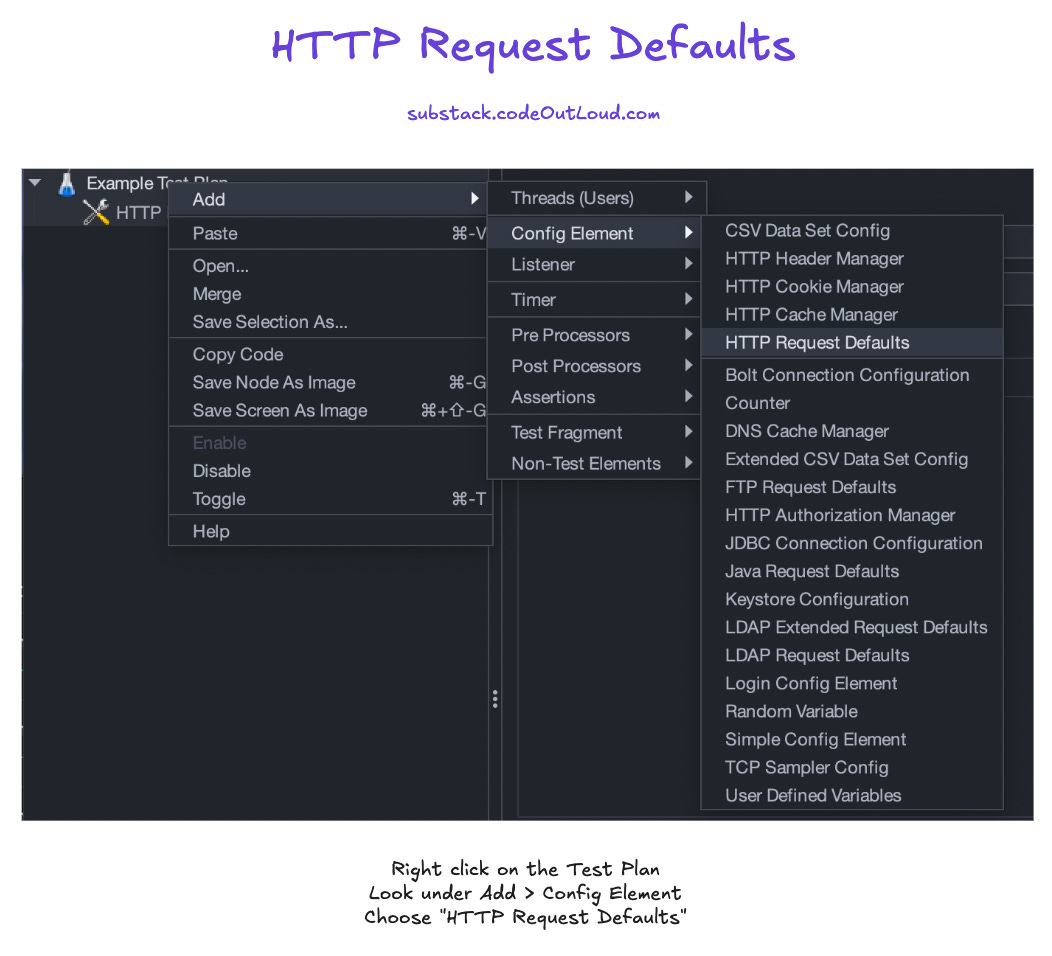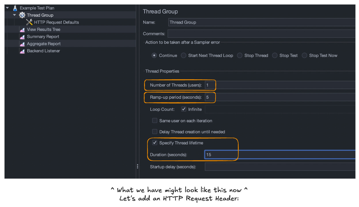 One “gotcha” you might encounter is that you’ll need to ensure you have a Thread Group first and then add associated options under that particular Thread Group. We’ll cover this below.