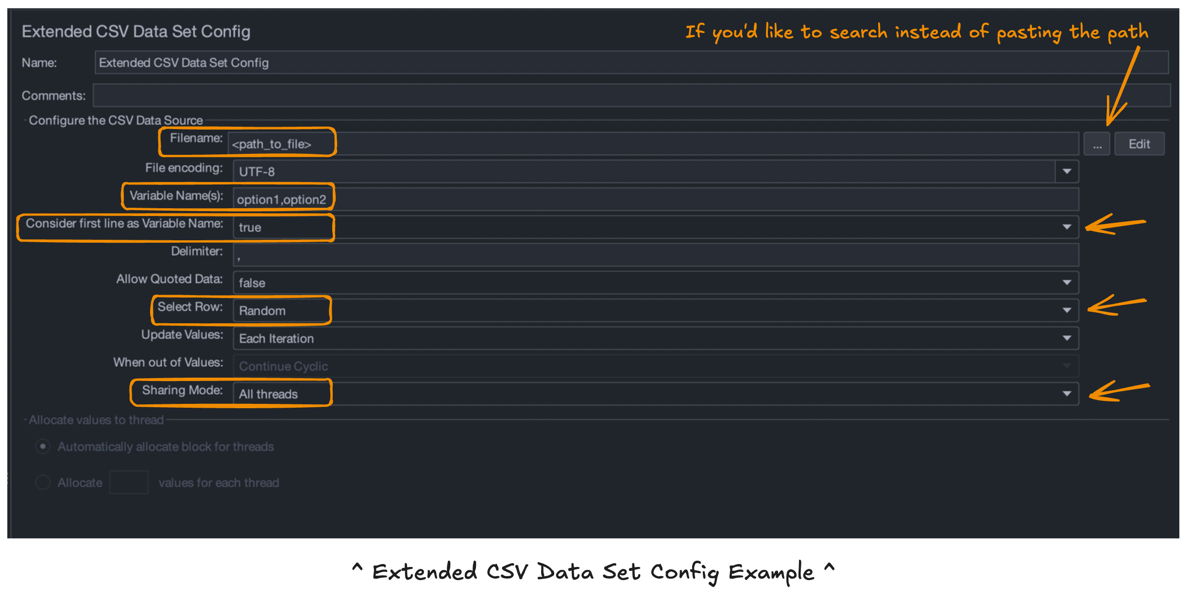 Finally, one of the most interesting options was the Extended CSV Data Set Config. The CSV Data Set Config option didn’t provide the desired random input effect.